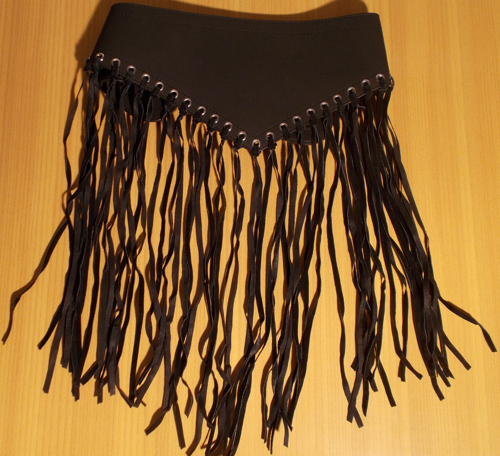 schwarzer Dreiecksgürtel mit 28 cm langen Fransen der Gürtel ist aus Kunstlederan der Dreiecksspitze ist er 14 cm breit, ansonsten 6 cm TOP Zustand!
