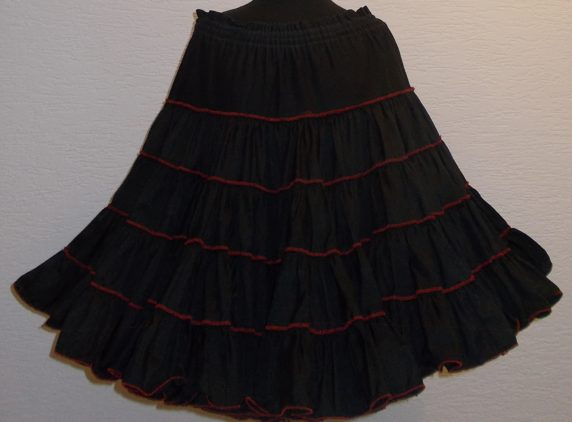 scharzer Petticoat bei diesem Petticoat wurde sehr viel Material verarbeitet, das Material ist weich und angenehm zu tragendie einzelnen Stufen sind mit rostrotem Faden gekordelt2-lagig, 4- stufigguter Zustand