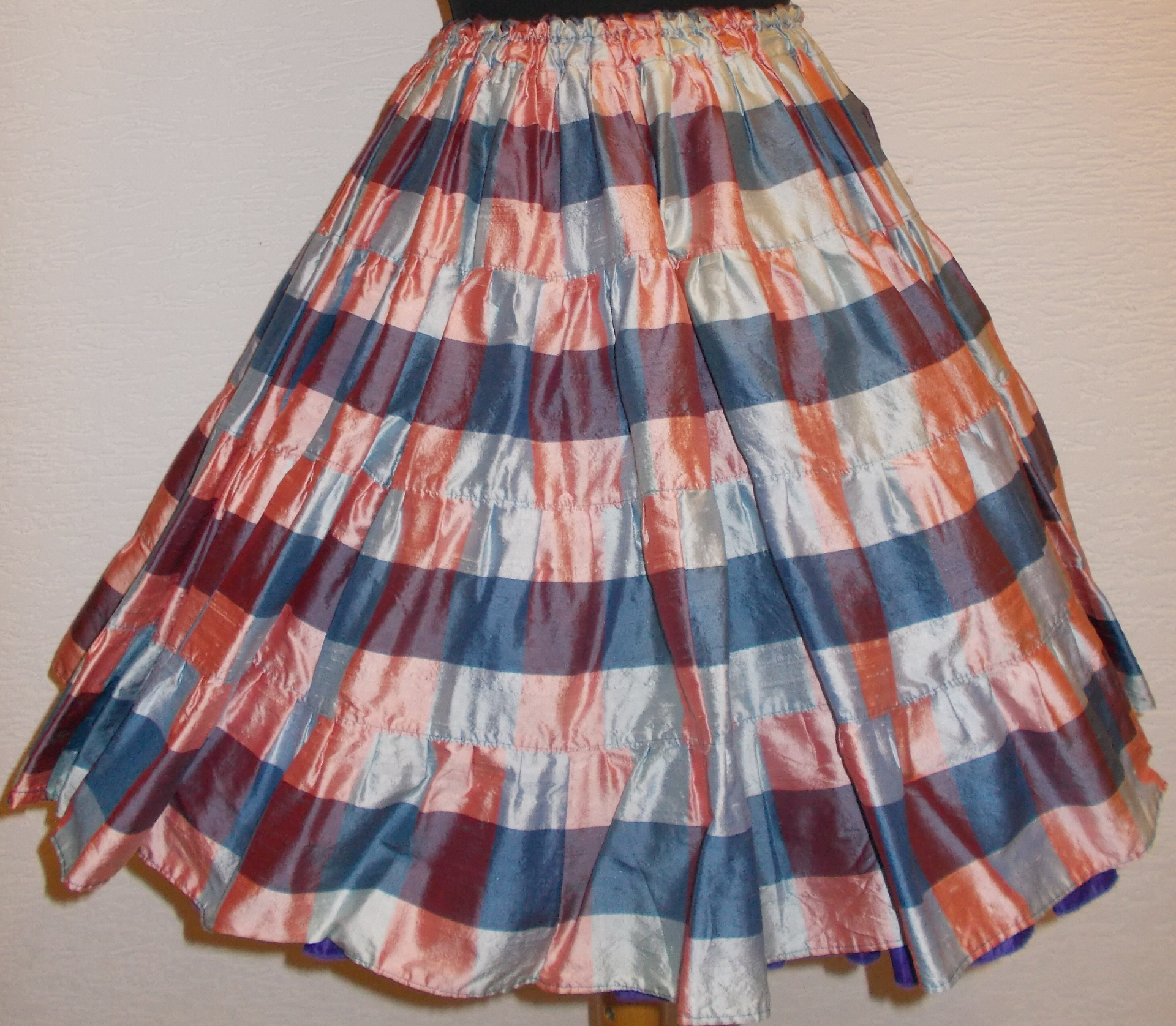 karierter Rock in den Farben rauchblau, altrosa 3,5 cm breiter Gummibundguter Zustand!Unikat!
