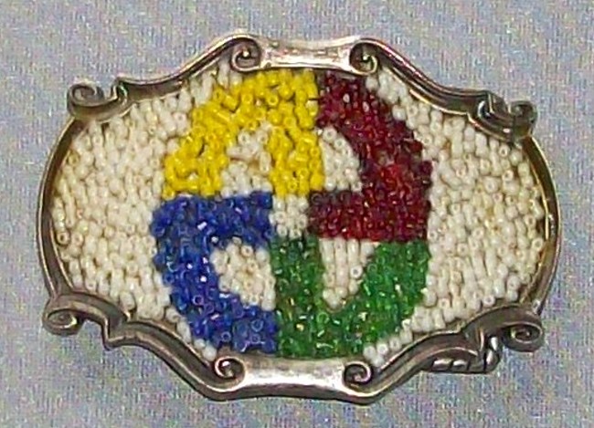 silberfarbene GürtelschnalleAntik-LookMuster aus bunten, kleinen Perlenfür Gürtelbreite 4 cm Grösse 9 x 6 cm