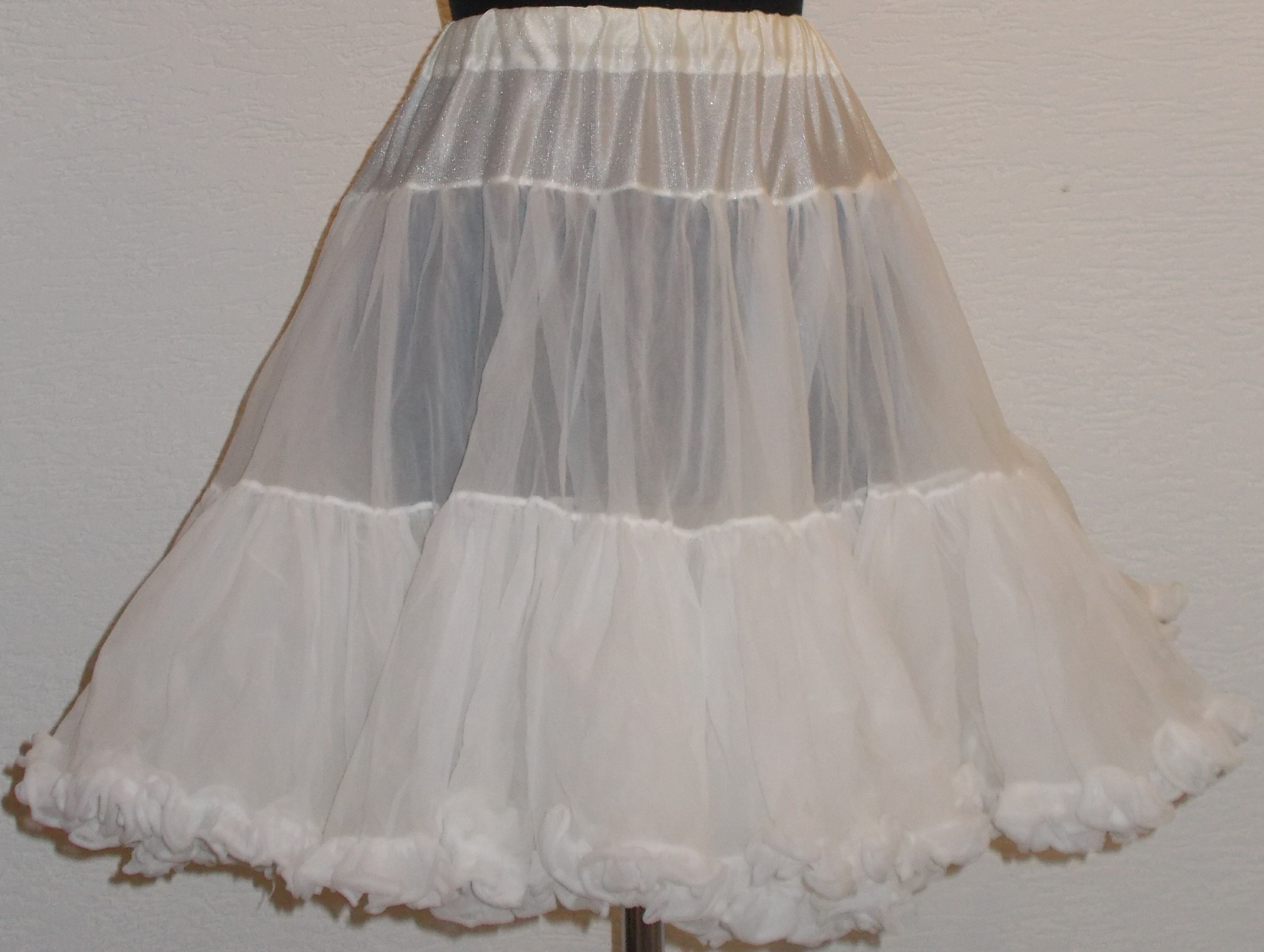 weisser soft Petticoat der Marke Meg Simkins2- lagig , 2-stufigunten mit Fluffy- Rüsche Material:100% Nylonguter Zustand!